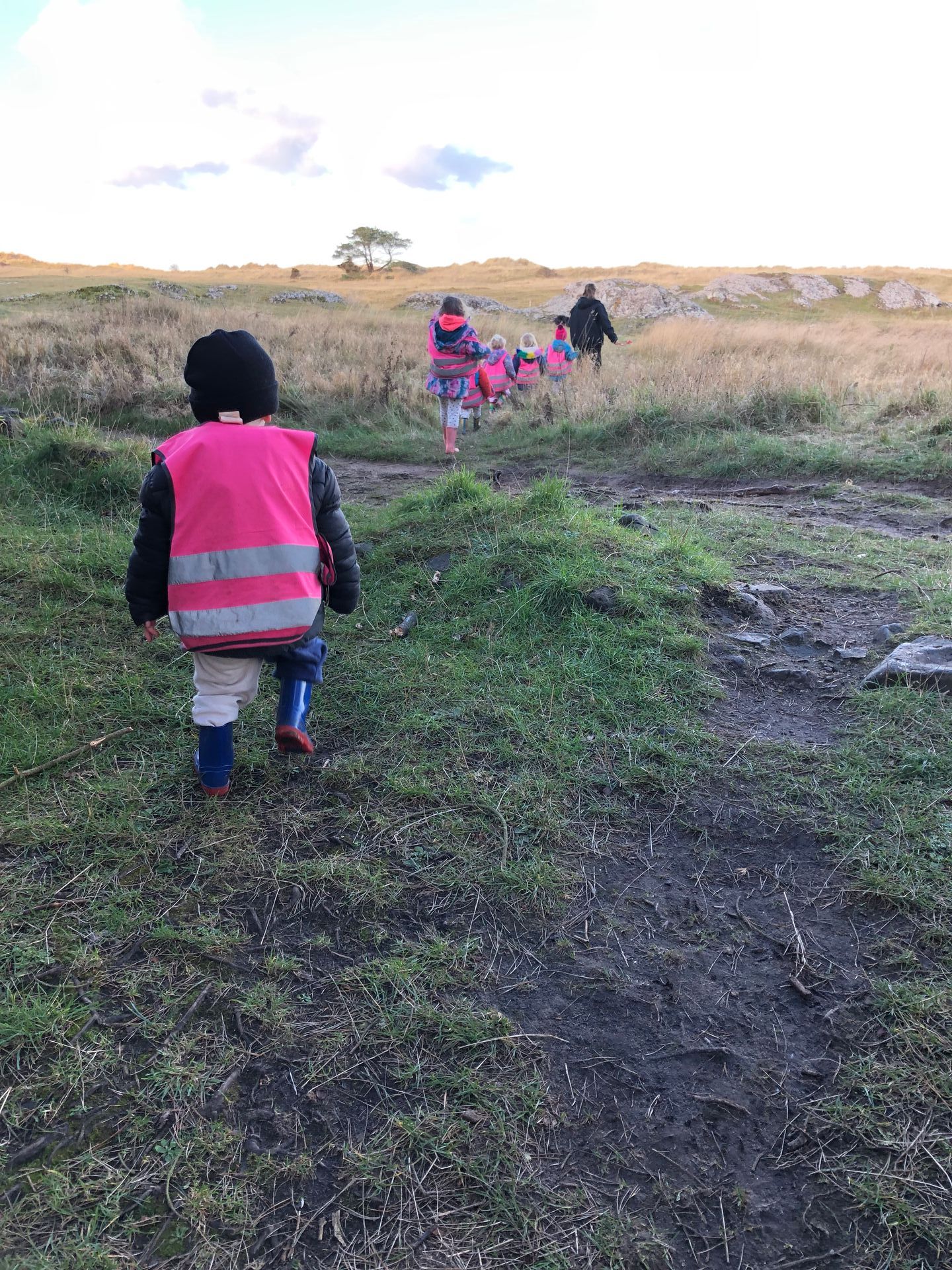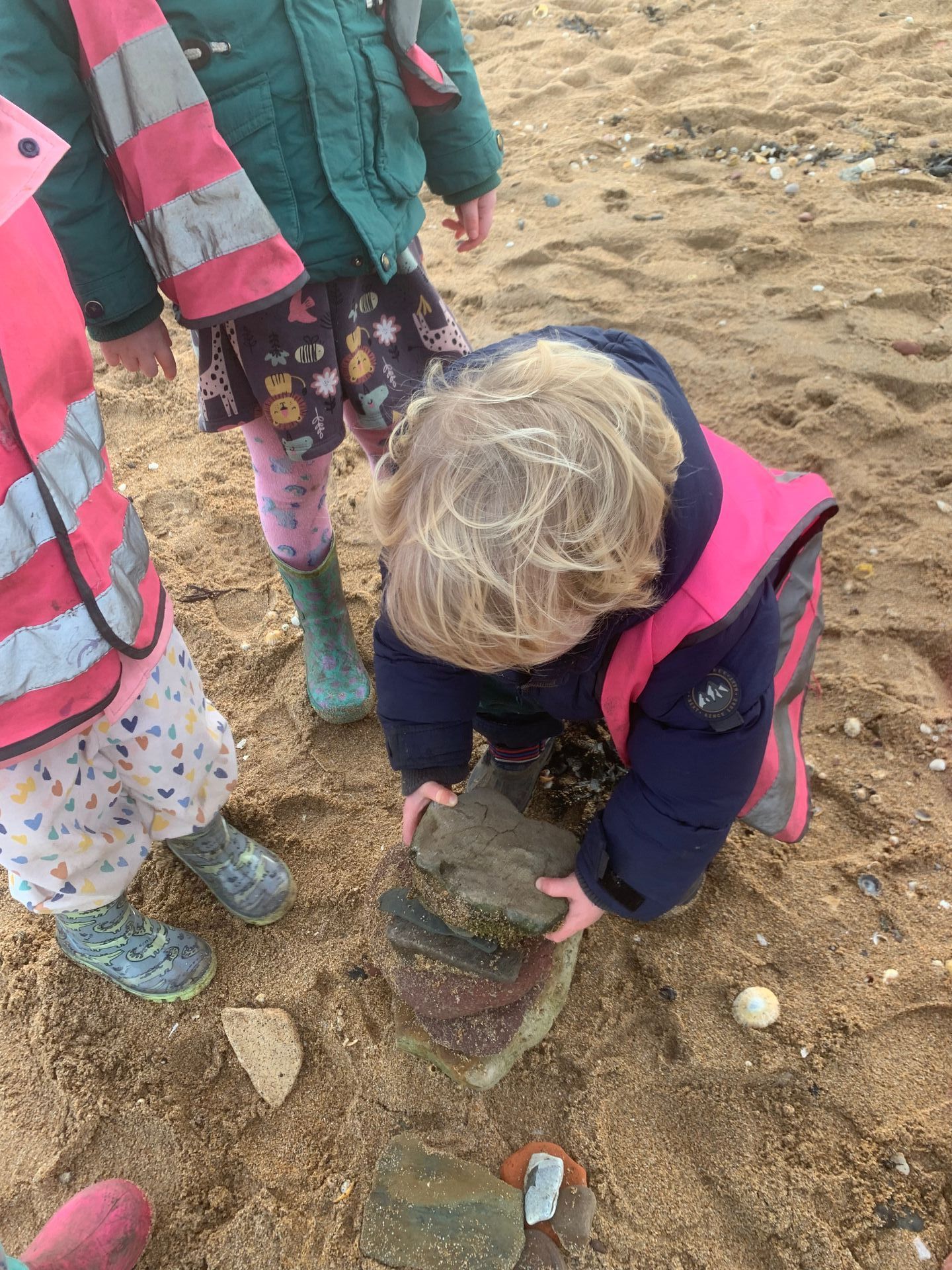 We love our surroundings. We make the most of what our doorstep and neighbourhood has to offer. Lots of our time is spent out and about. The children gain so much from being out in fresh air in spaces with no walls. We often visit local beaches, woodlands and green spaces and parks.